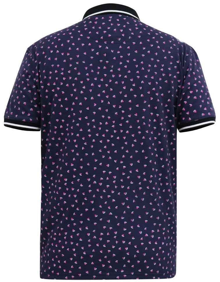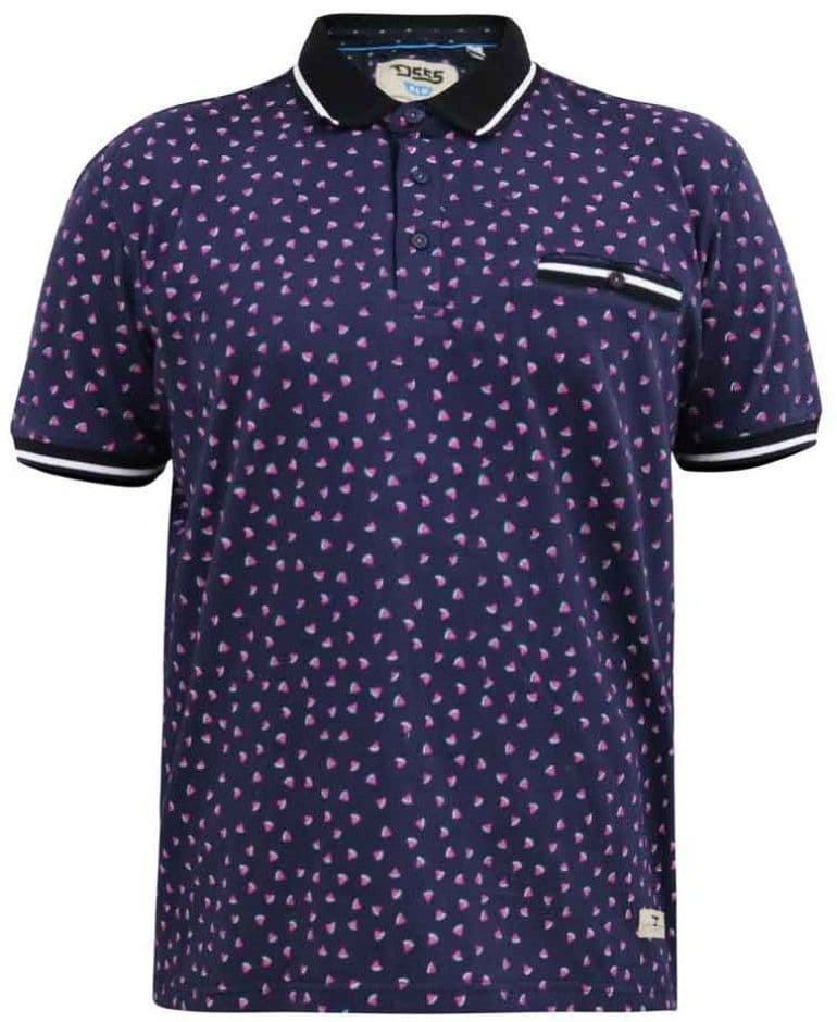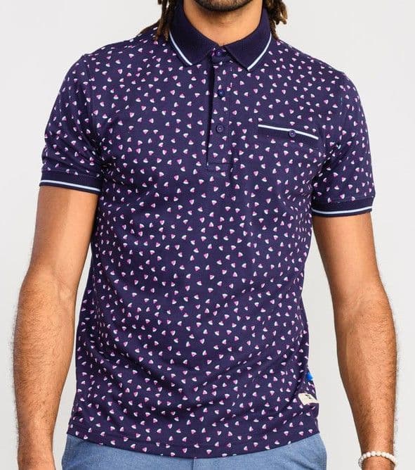 Men’s polo shirt from D555. This polo is cut from 100% cotton and features a 3 button placket neckline, ribbed collar and a small repeated melon print.