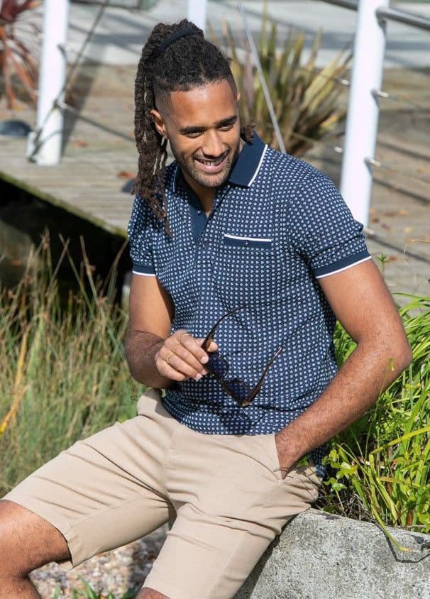 COVENTRY-D555 AO Printed Polo Shirt with Jacquard Collar and Ribbed Cuffs