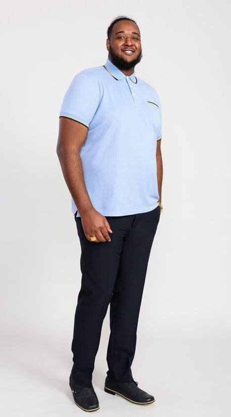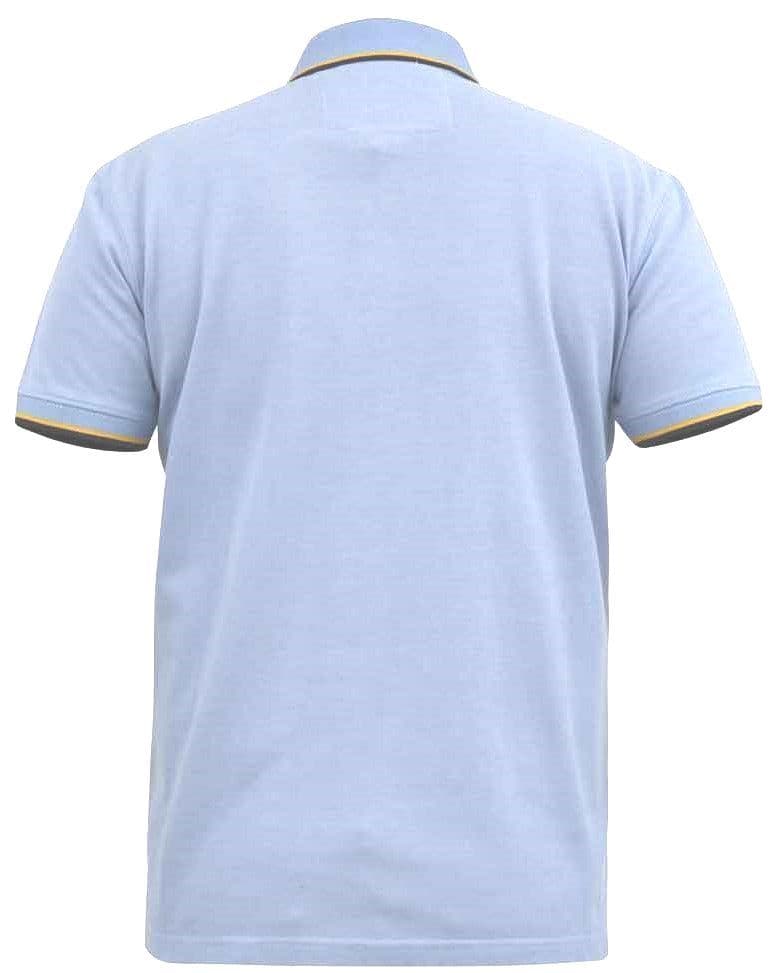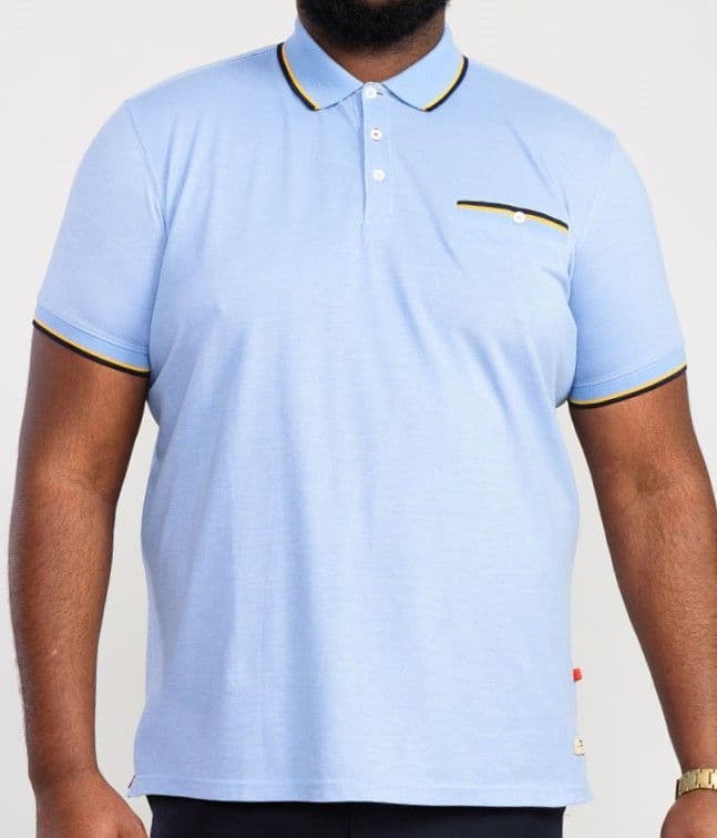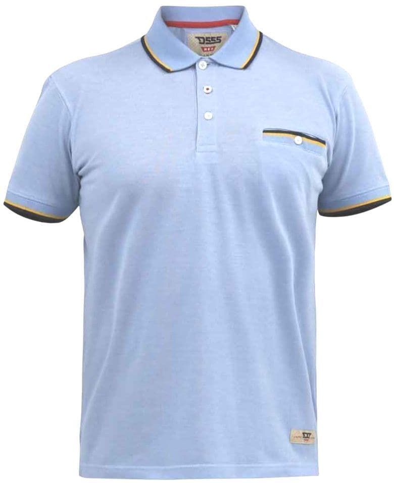 Men’s polo shirt from D555. This polo is cut from 60% cotton 40% polyester blend and features a 3 button placket neckline and contrast tipping to collar and sleeve.