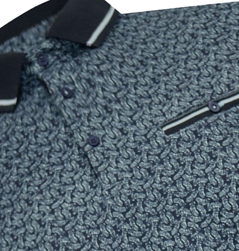WOOLWICH-D555 AO Printed Polo Shirt with Ribbed Collar and Ribbed Cuffs