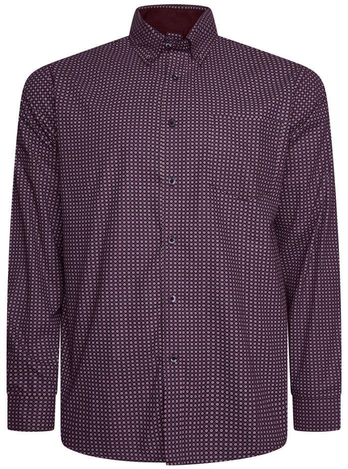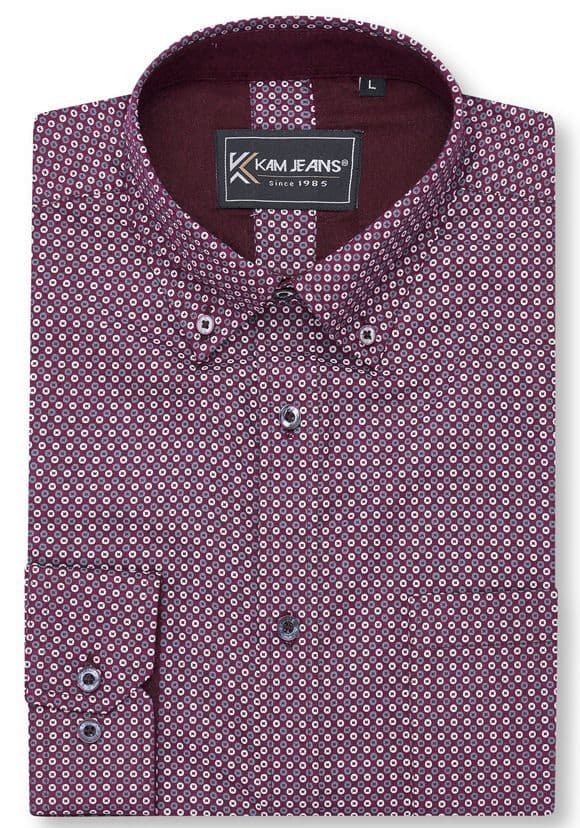 By KAM, this long sleeved smart geometric patterned shirt has a button down collar and a chest pocket. This shirt will look great with trousers, jeans or shorts.
