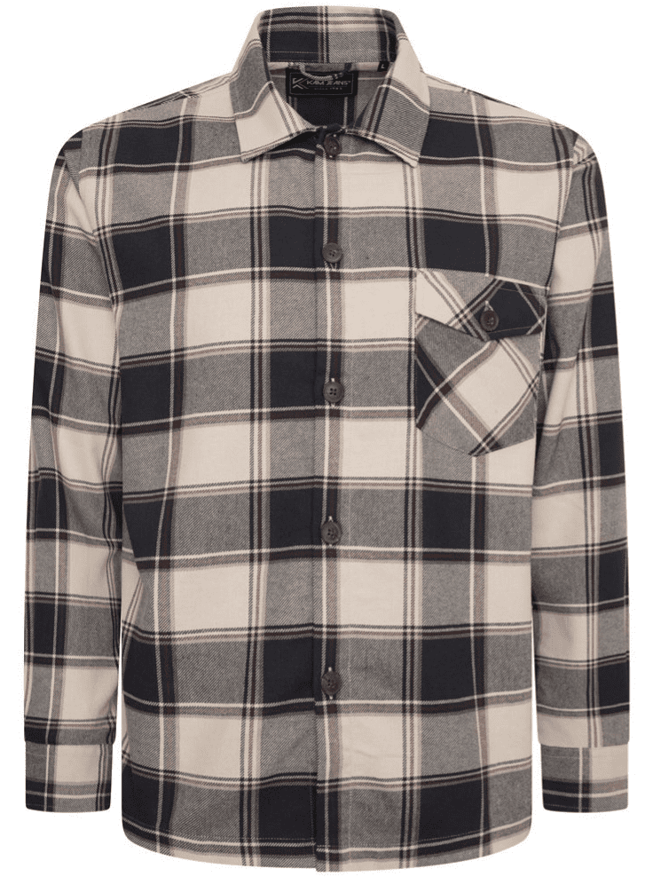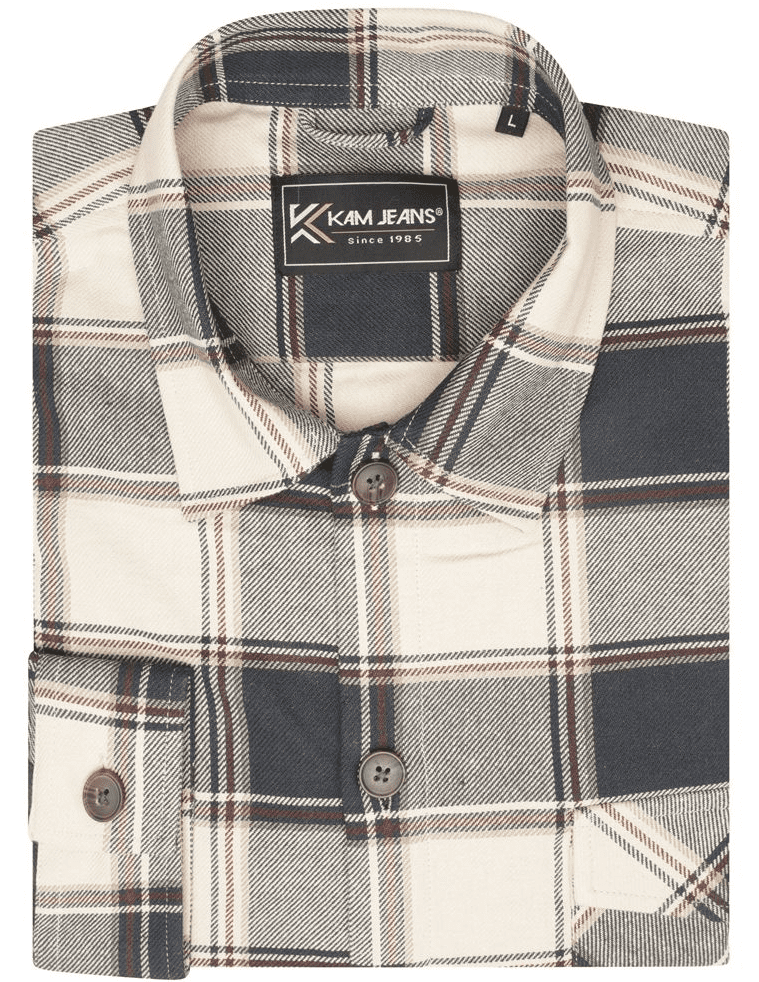 This stylish long sleeve heavy 'Lumberjack' style overshirt from KAM has a button down collar, twin chest flap pockets with button closure and a straight hem. In navy/ecru colour.